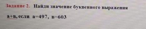 Пошаговое объяснение: если а=497 в=603 значит 497+603=1100 Просто буквы заменяем на цифры