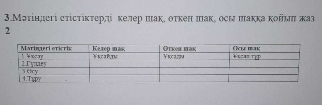 3.Мәтіндегі етістіктерді келер шақ, өткен шақ, осы шаққа қойып жаз
