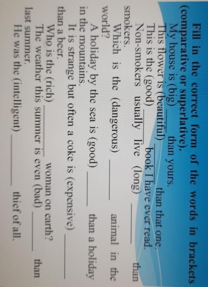 Заполните правильную форму слов в скобках сравнительной или превосходной степени