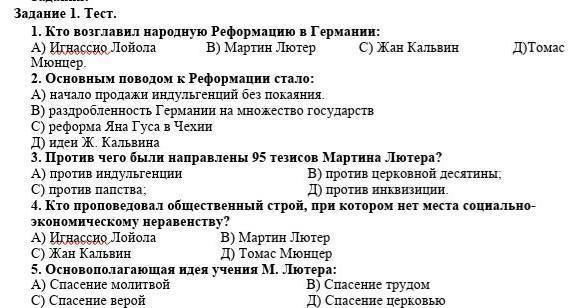 А) Игнассио Лойола В) Мартин Лютер С) Жан Кальвин Д)Томас Мюнцер.