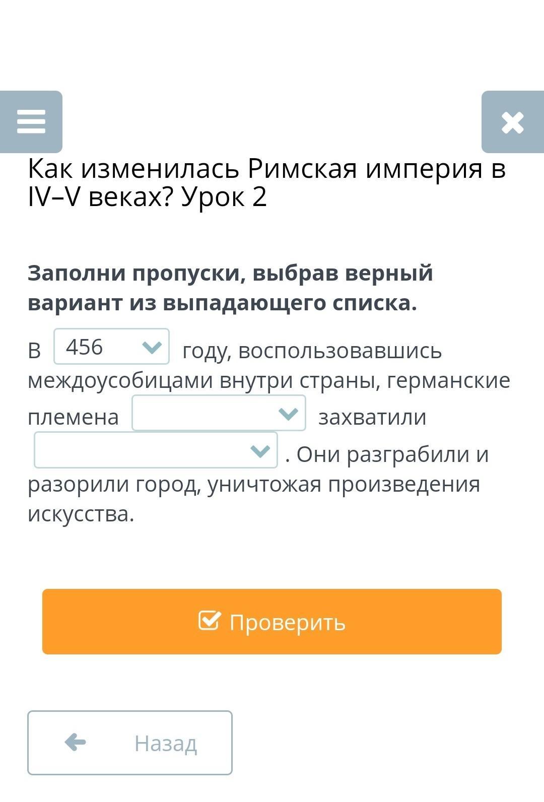 Заполни пропуски, выбрав верный вариант из выпадающего списка.