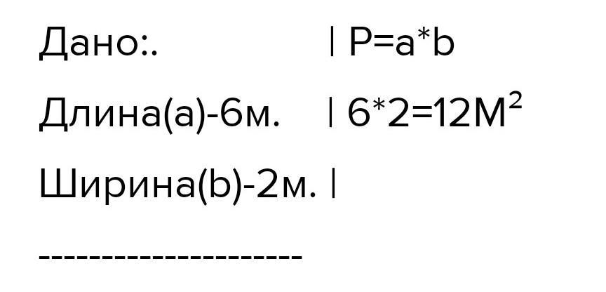 Длина(a)-6м. | 6*2=12М²