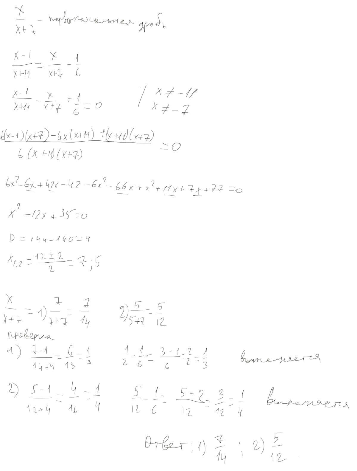 знаменатель увеличили на 4. Знаменатель был х+7