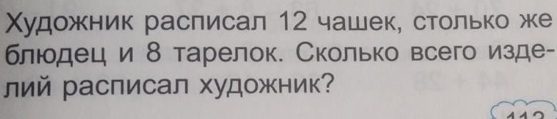 1) 12+12+8=32 (блюдца) - исписал художник.