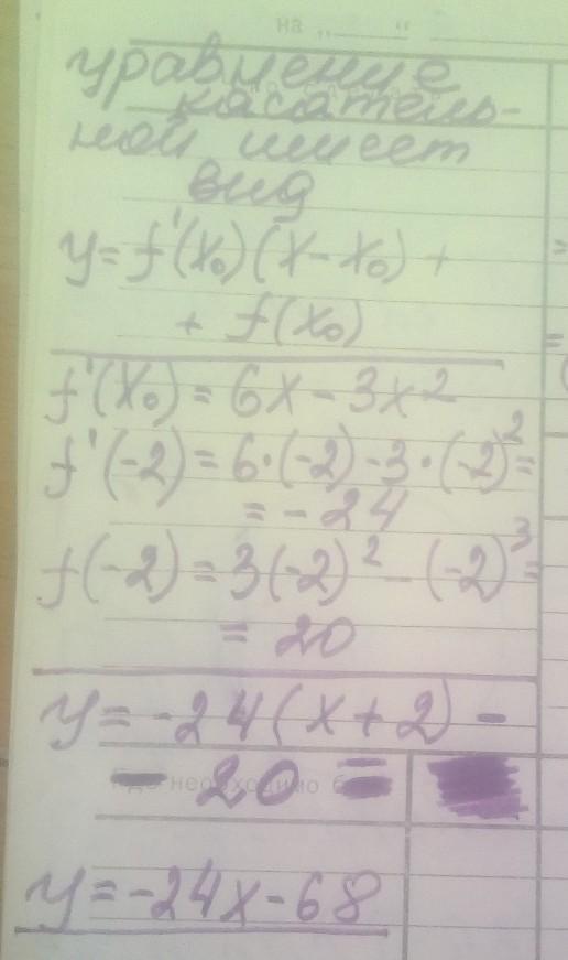 Складіть рівняння дотичної до графіка функції f(x)3x²-x³ у точці х0=-2. Допоможіть будь-ласка благаю вас дуже плиззз плиззз плиззз плиззз срочно пожалуста плиззз плиззз
