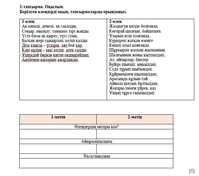 Берілген өлеңдерді оқып, тапсырмаларды орындаңыз.