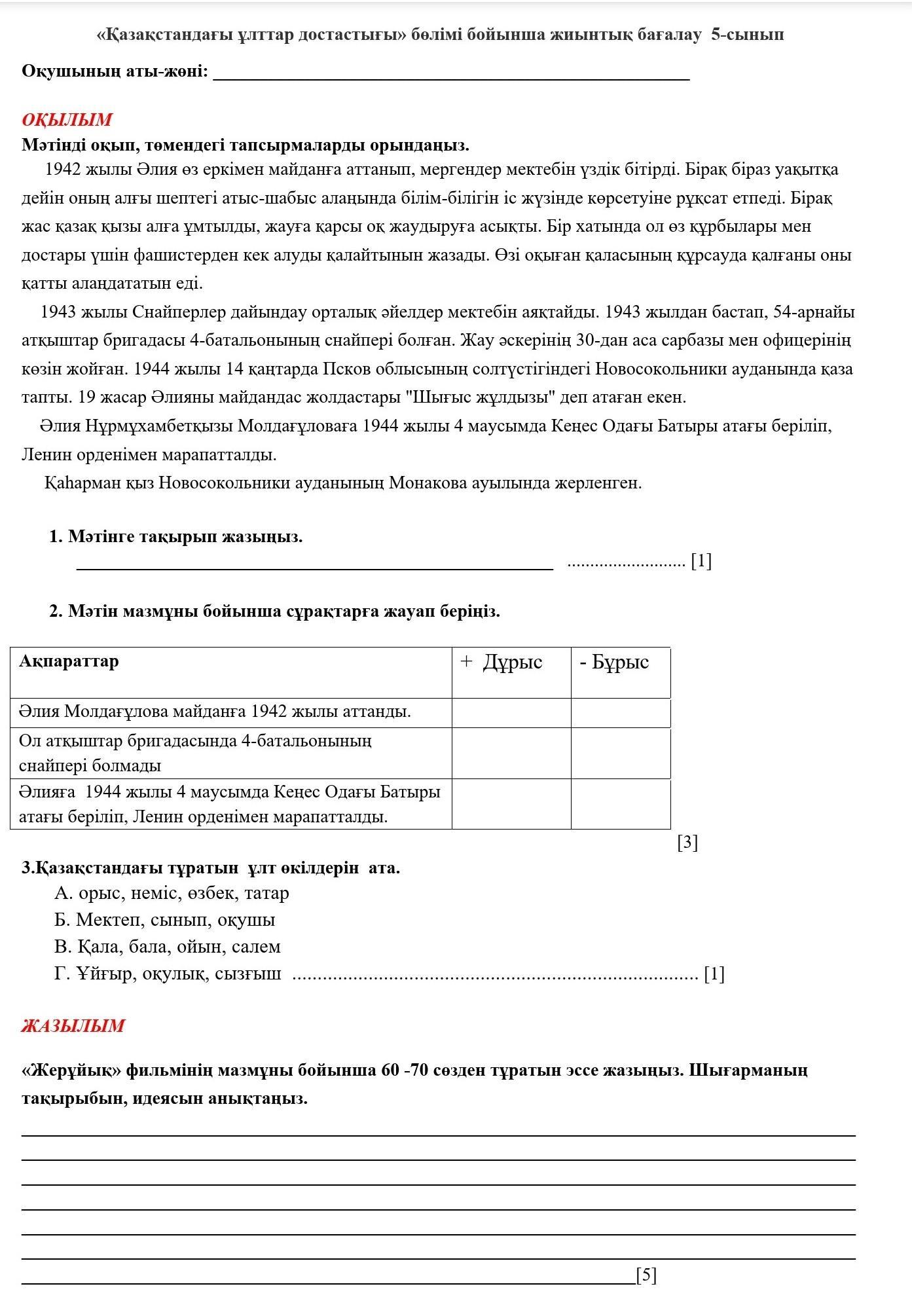 1. Тақырып "Әлия Молдағұлованың өмірі".