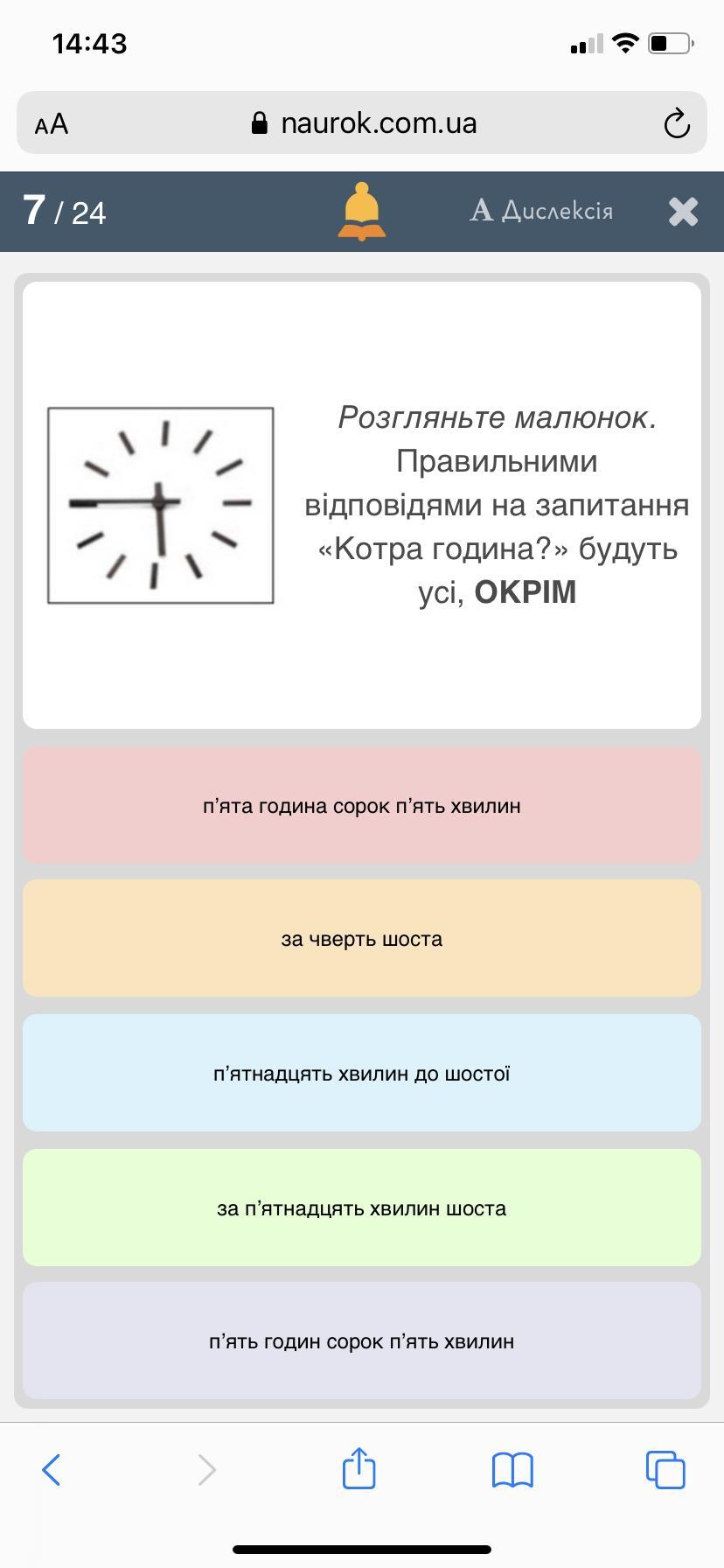 5 варіант(п'ять годин сорок п'ять хвилин)