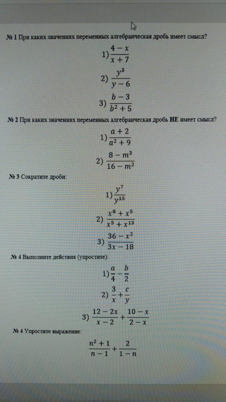 № При каких значениях переменных алгебраическая дробь имеет смысл?