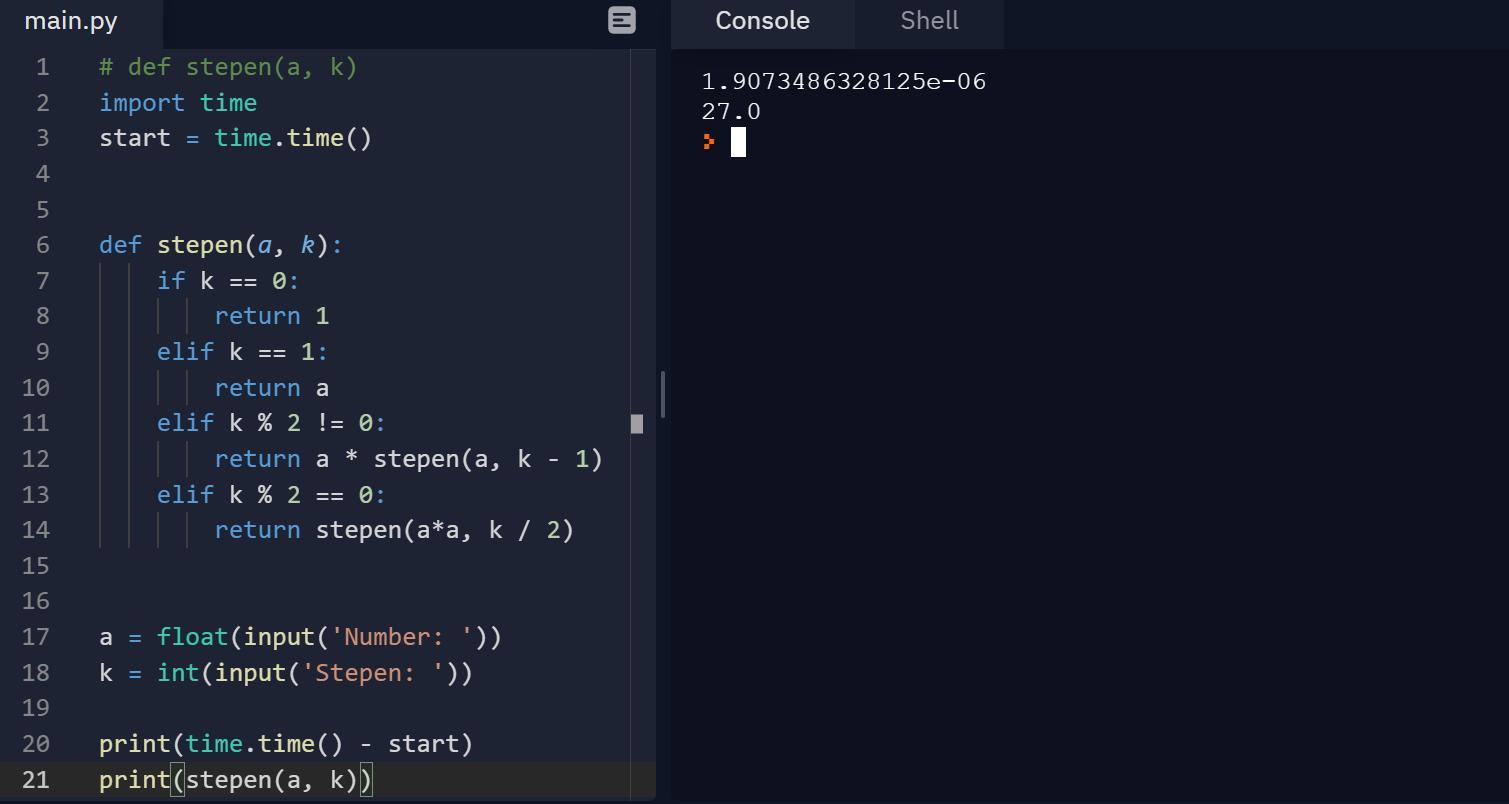 Итак, опишем функцию stepen() в соответствии с рекуррентными соотношениями.