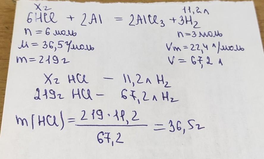 яку масу хлоридної кислоти при взаємодії з алюмінієм потрібно взяти щоб виділилось 11,2 л водню н у