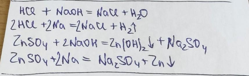 натрій. Запишіть реакції, які відбудуться між даними речовинами.