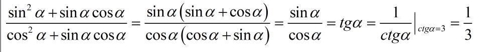 Вычислите значение выражения sin^2a + sina*cosa / cos^2a+sina*cosa, если ctga=3.