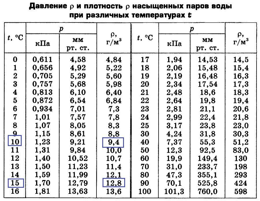ρ₀ = 12,8 г/м³ (см. Приложение)