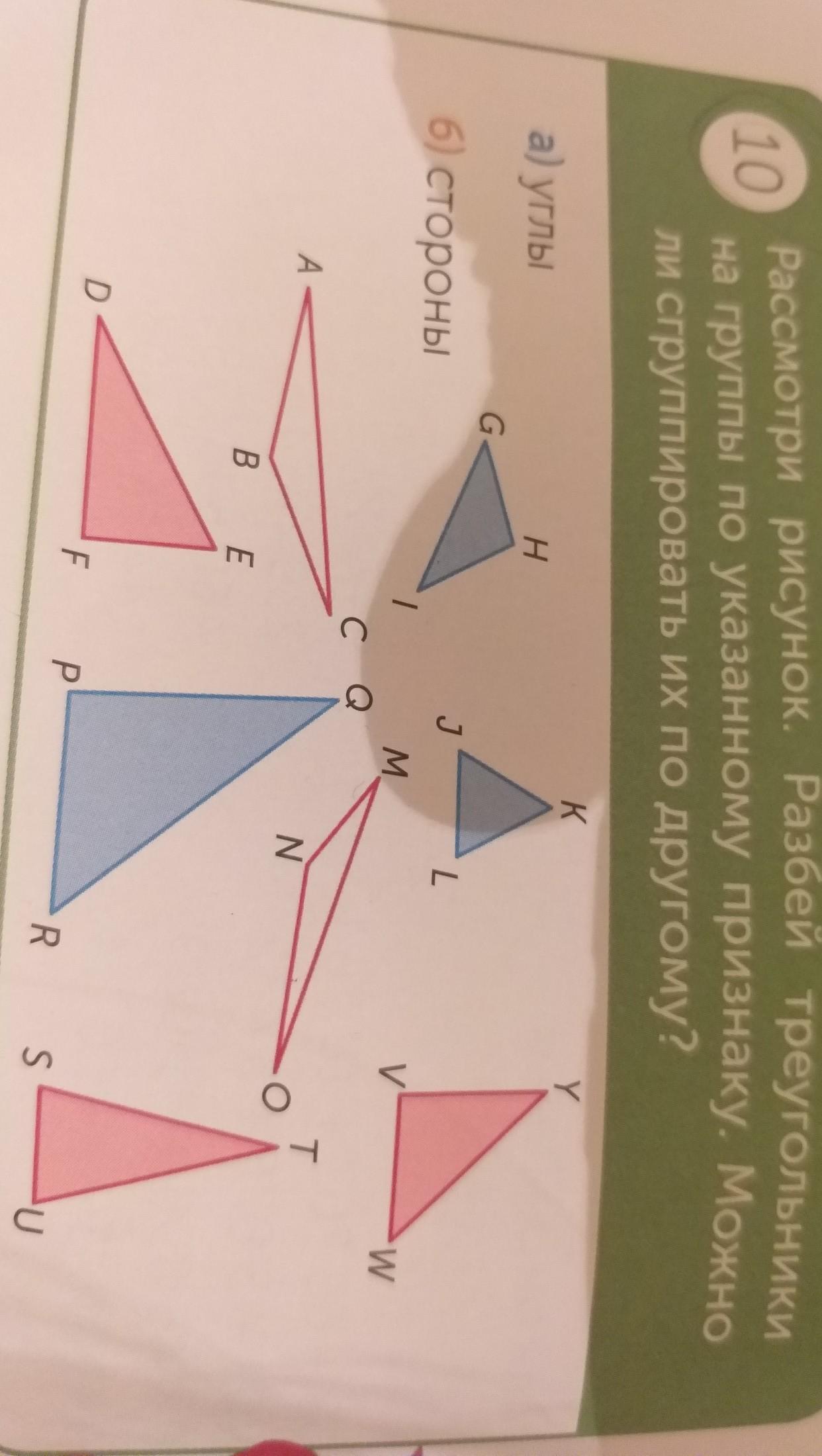 Рассмотри рисунок. Разбей треугольники