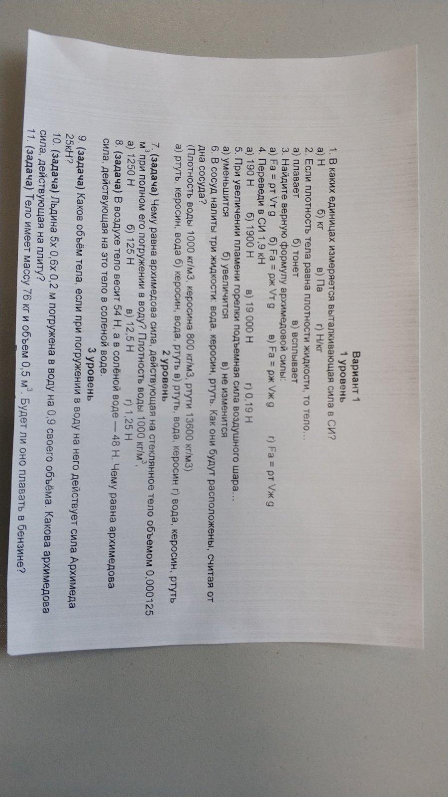 Fa=Vgp=0,000125m3*1000кг/м3*10H/кг=1,25 H