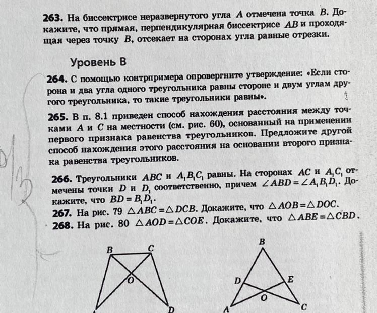 1. Если △АВС = △DCB , то АВ = СD , ∠A = ∠D , OA = OD , ==> △AOB = △DOC — по двум сторонам и углу между ними , что и требовалось доказать