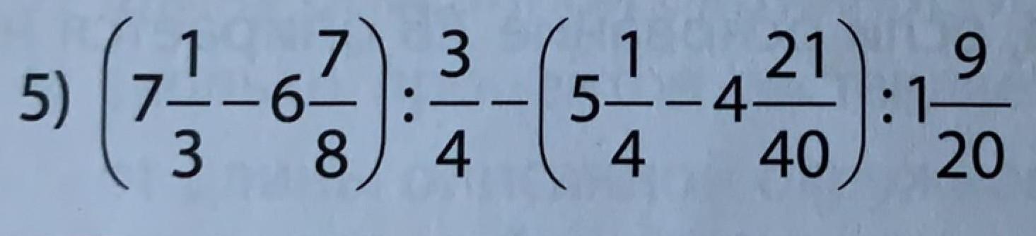 (7 1/3 - 6 7/8) : 3/4 - (5 1/4 - 4 21/40) : 1 9/20;