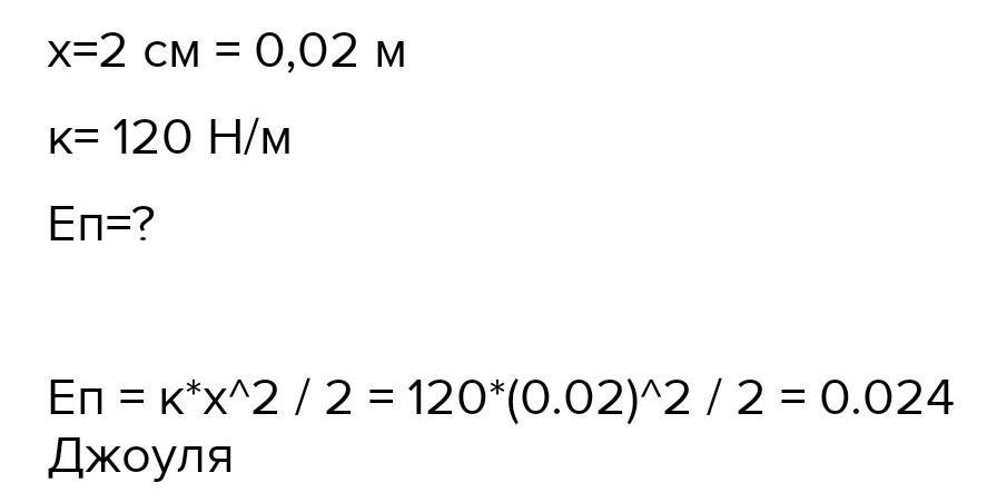 пружину жескостью 120h/m сжали на 2 см определите потенциальную энергию сжатой пружины