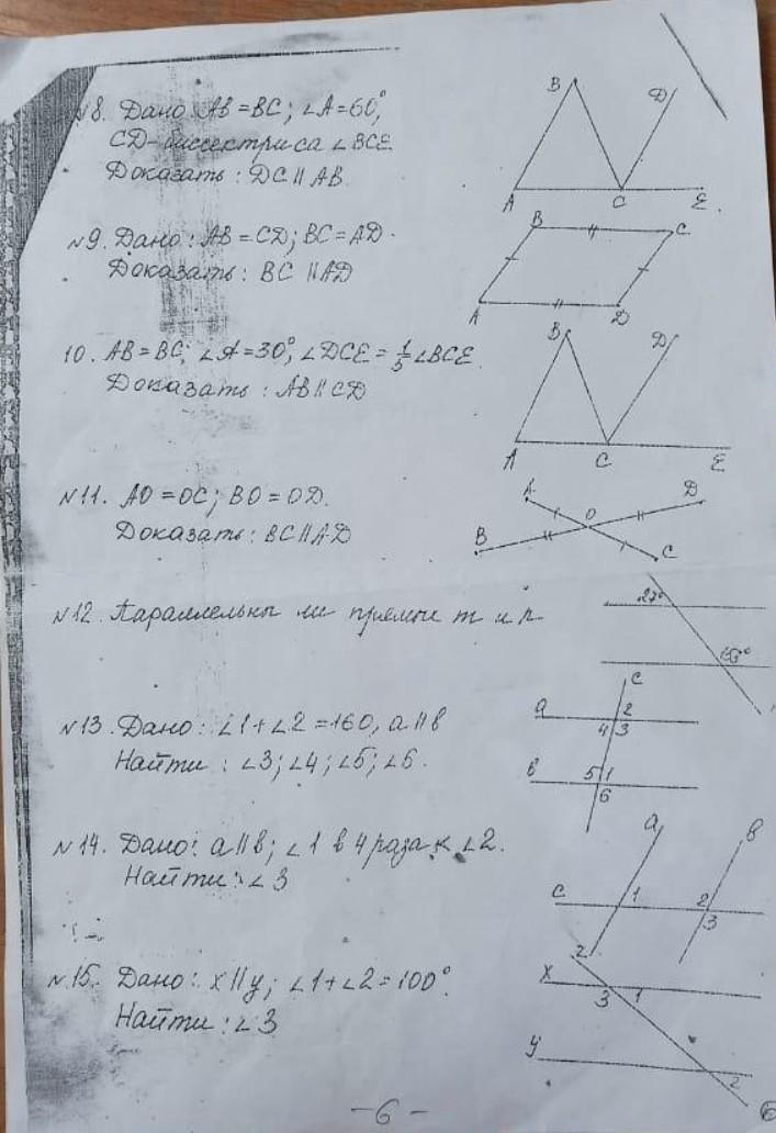 8. если АВ=ВС значит треугольник равнобедренный,а у равнобедренного треугольника углы при основании равны, значит угол А равен угол С равен углу В (180-60-60=60) равен 60 .следовательно ВСЕ =180-60=120градус.а ДСЕ-60.значит АВ паралельно ВС.