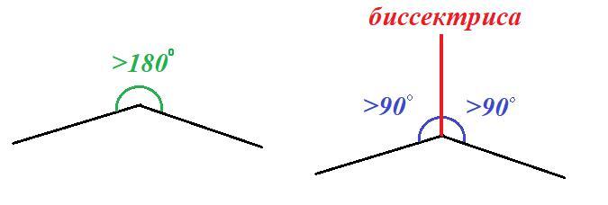 Если угол больше 180°, то биссектриса такого угла составит тупой угол с его стороной.