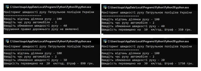 Результат повідомити відповідним надписом з вказівкою швидкості руху.