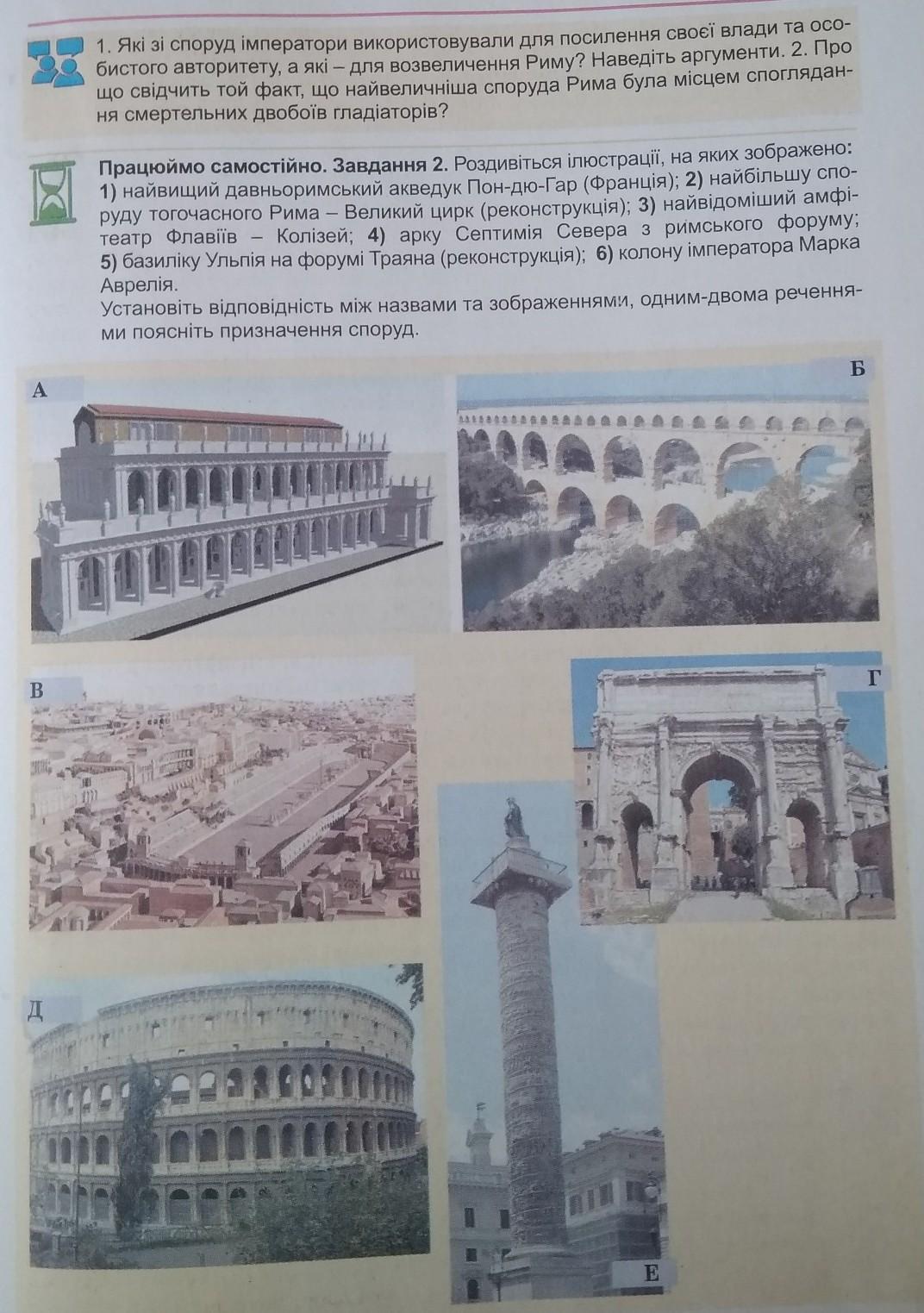 Б - Акведук Е - Колона імператора Траяна в Римі