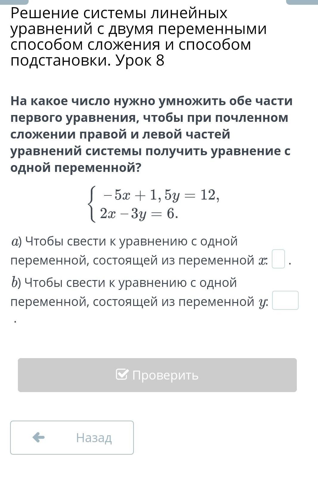 На какое число нужно умножить обе части первого уравнения, чтобы при почленном сложении правой и левой частей уравнений системы получить уравнение с одной переменной?