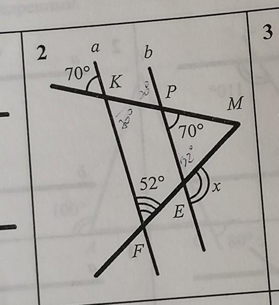 3) Если a || b, то ∠PEM = ∠KFE (соответственные) = 52°
