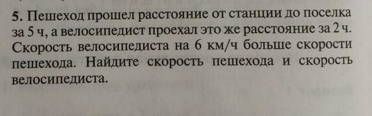 Ответ: 4 км/ч скорость пешехода ; 10 км/ч скорость велосипедиста