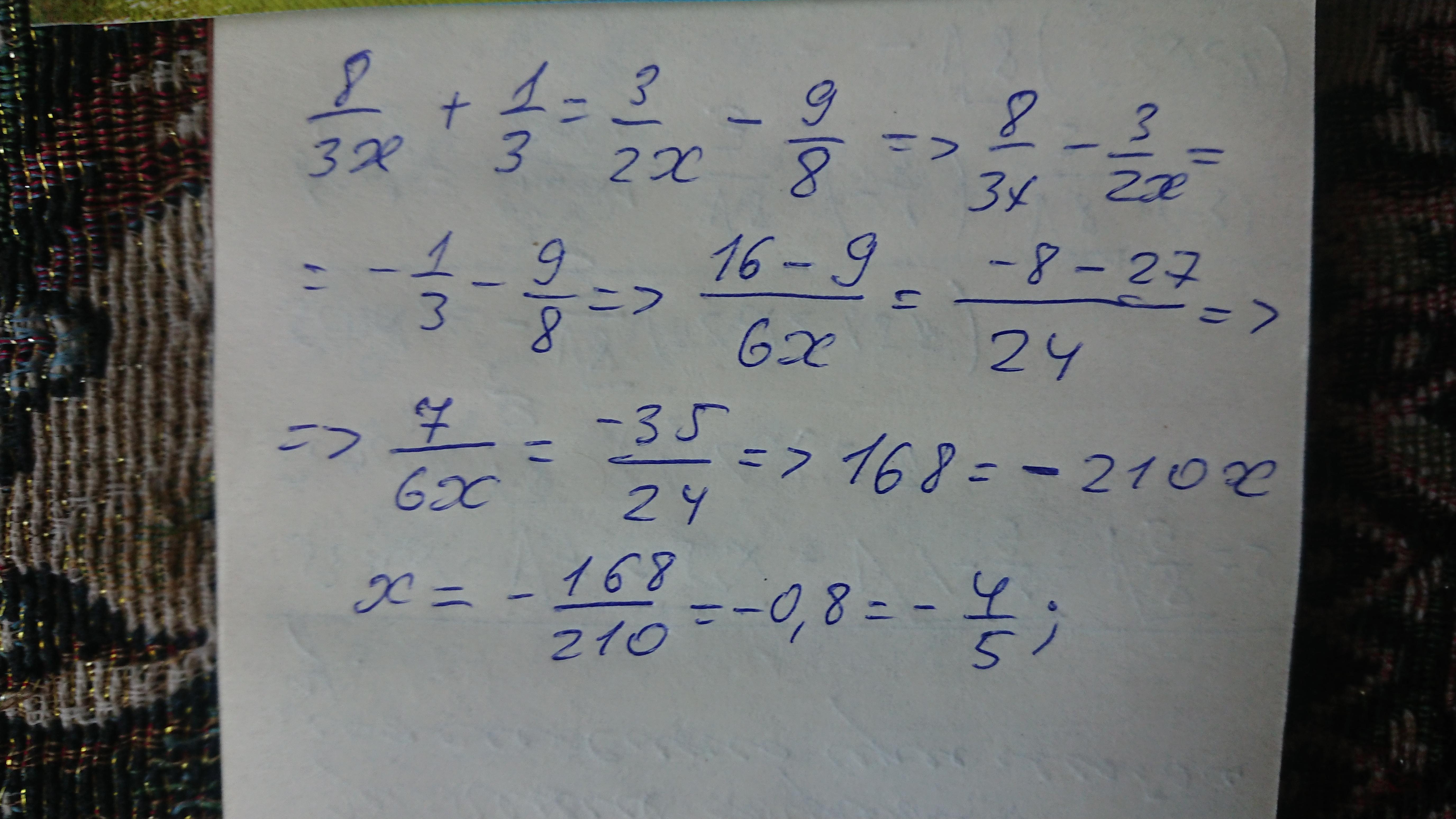 Ответ: х=-4/5. См фото.