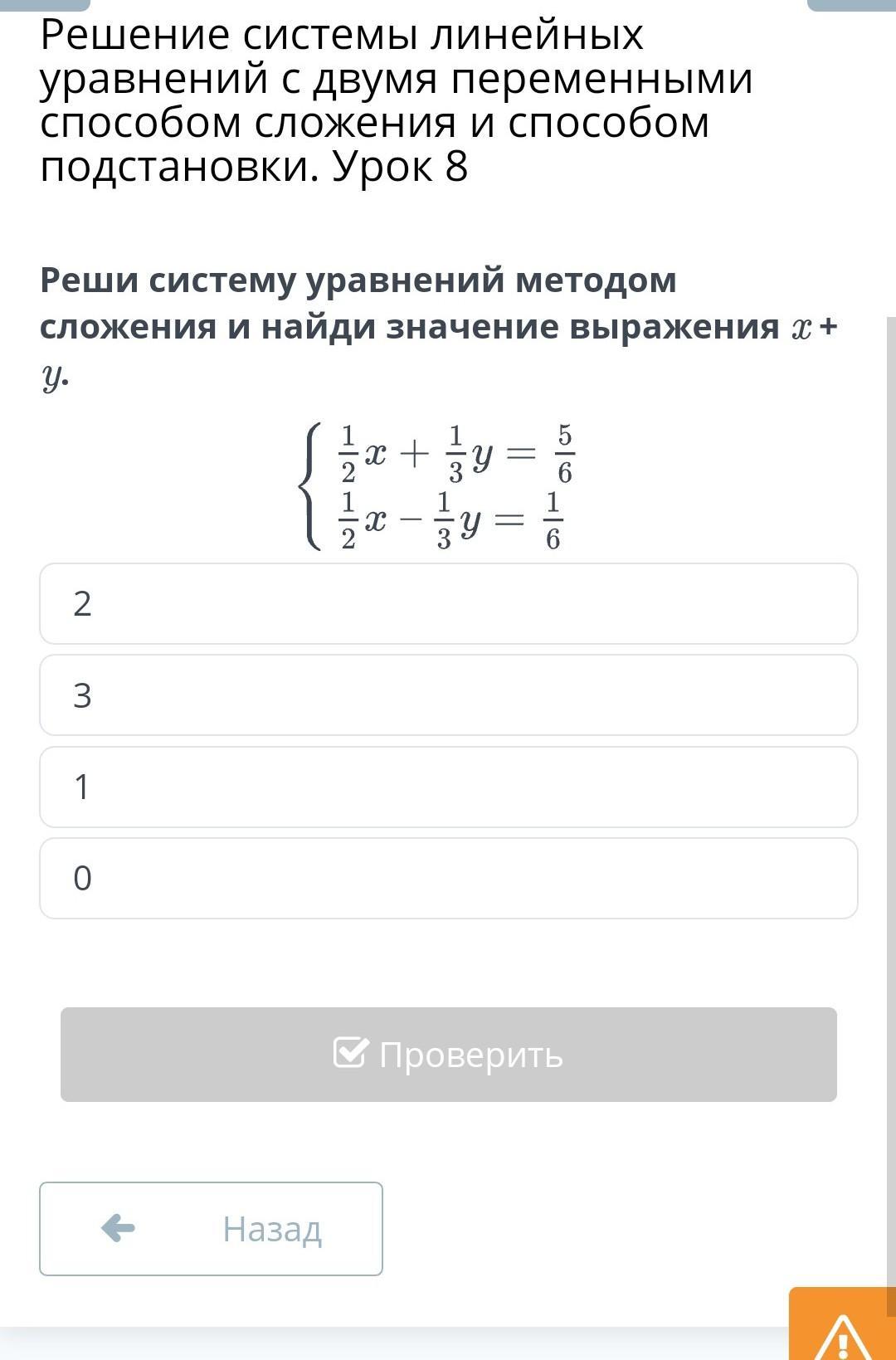 Реши систему уравнений методом сложения и найди значение выражения x + y.