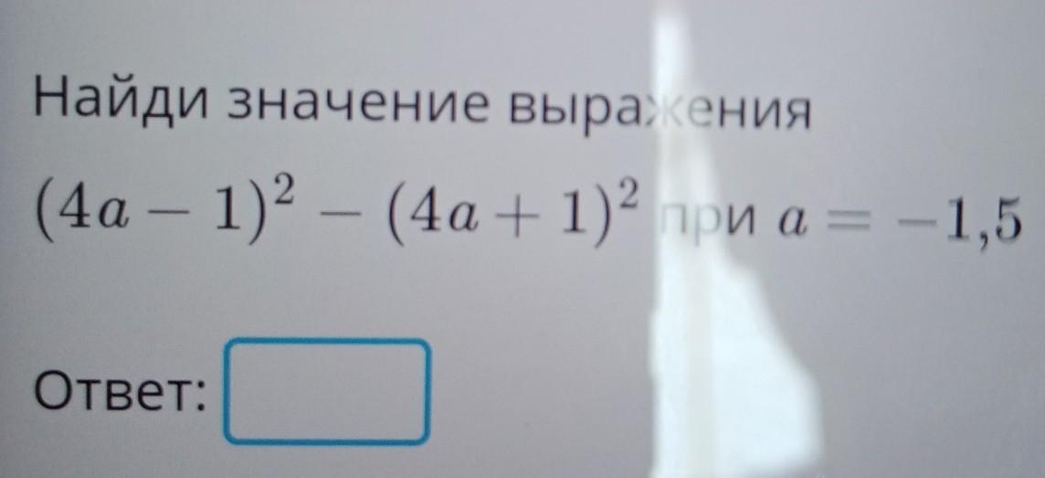 (4а-1) ² - (4а+1) ² = 16а ² - 8а + 1 - (16а ² + 8а + 1) = 16а ² - 8а + 1 - 16а ² - 8а - 1= - 16а