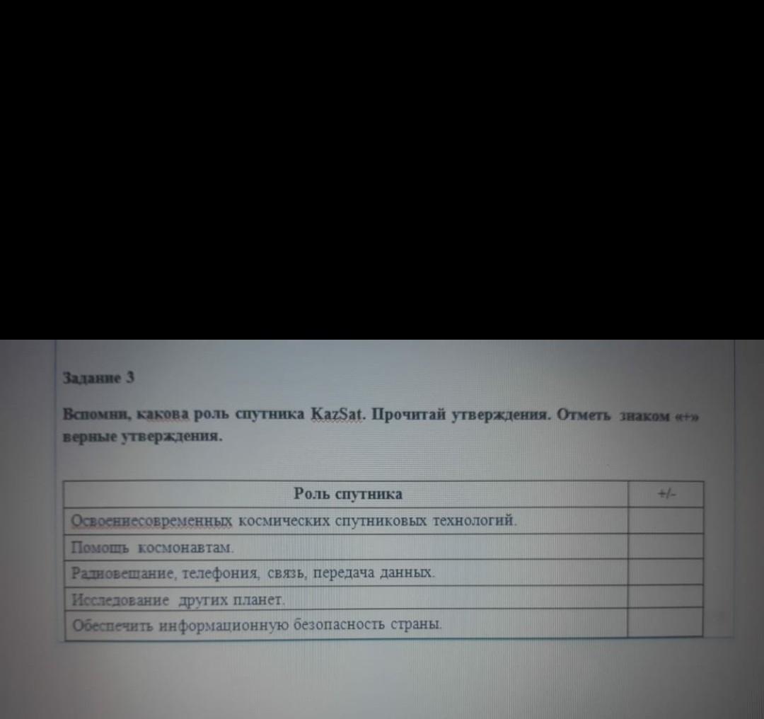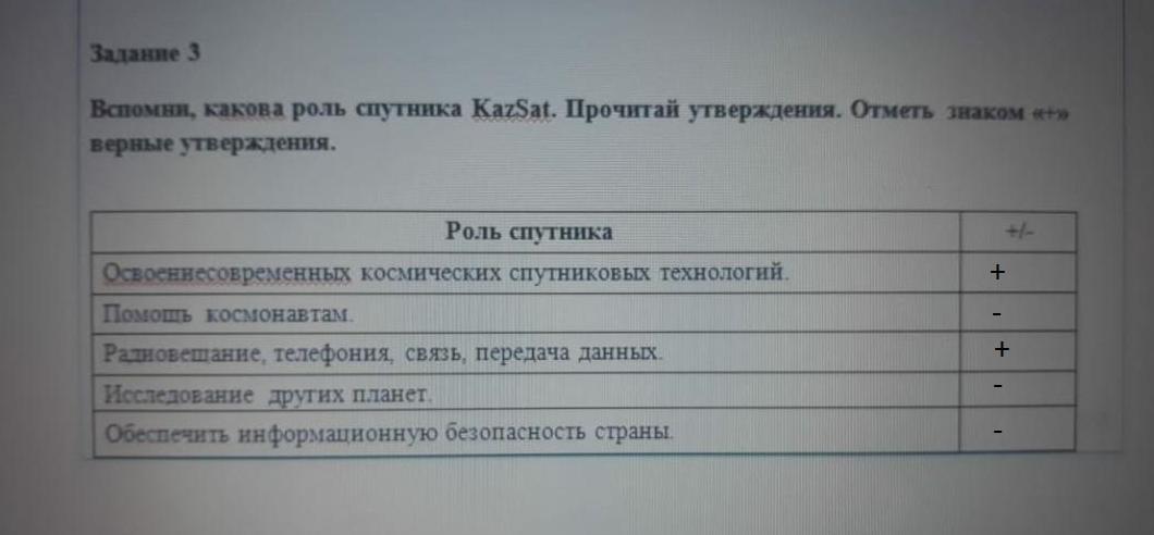 Вспомни, какова роль спутника KazSat. Прочитай утверждения. Отметь знаком