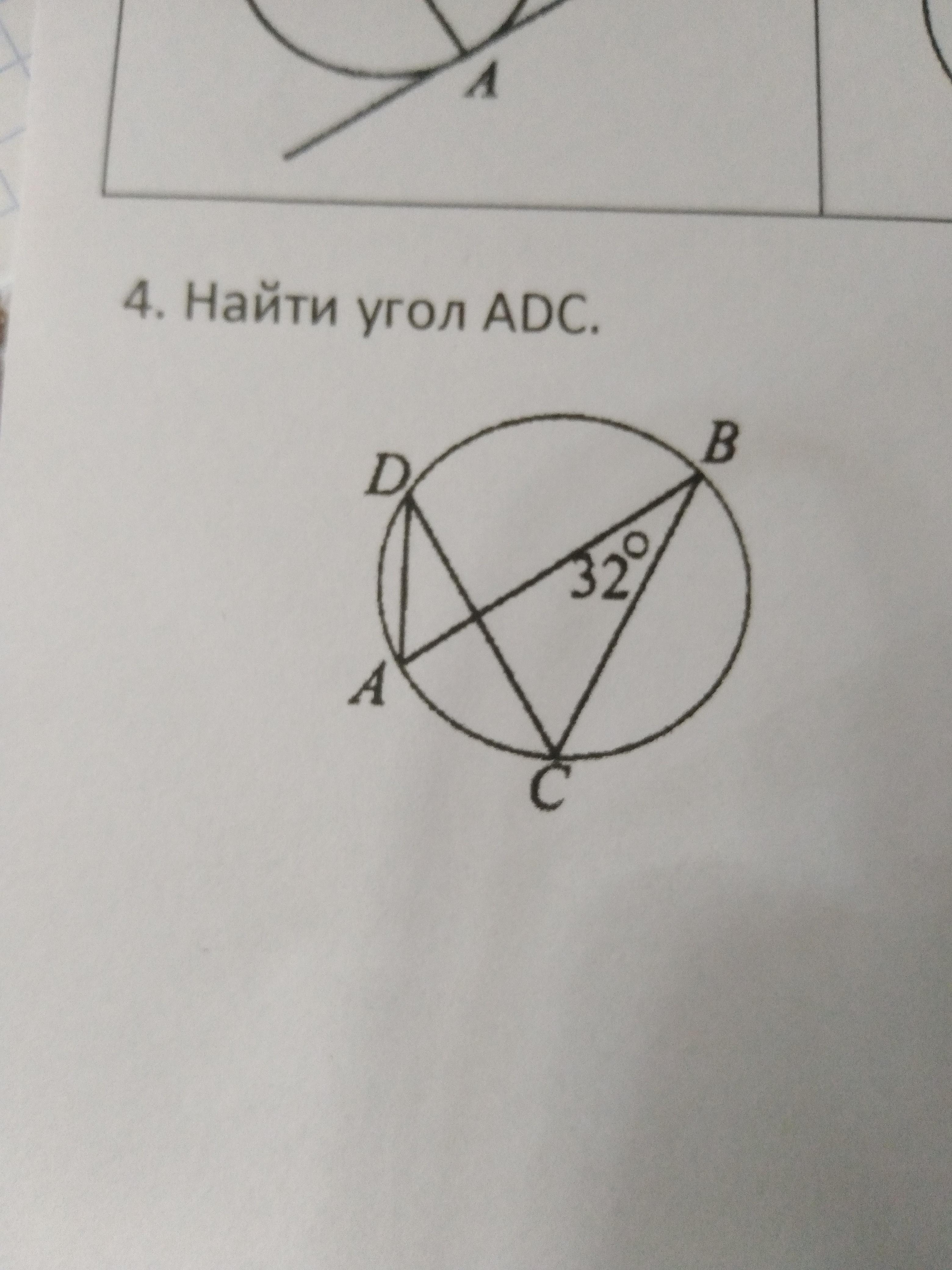 Вписанные углы, опирающиеся на одну хорду, равны. Значит угол ADC равен 32°
