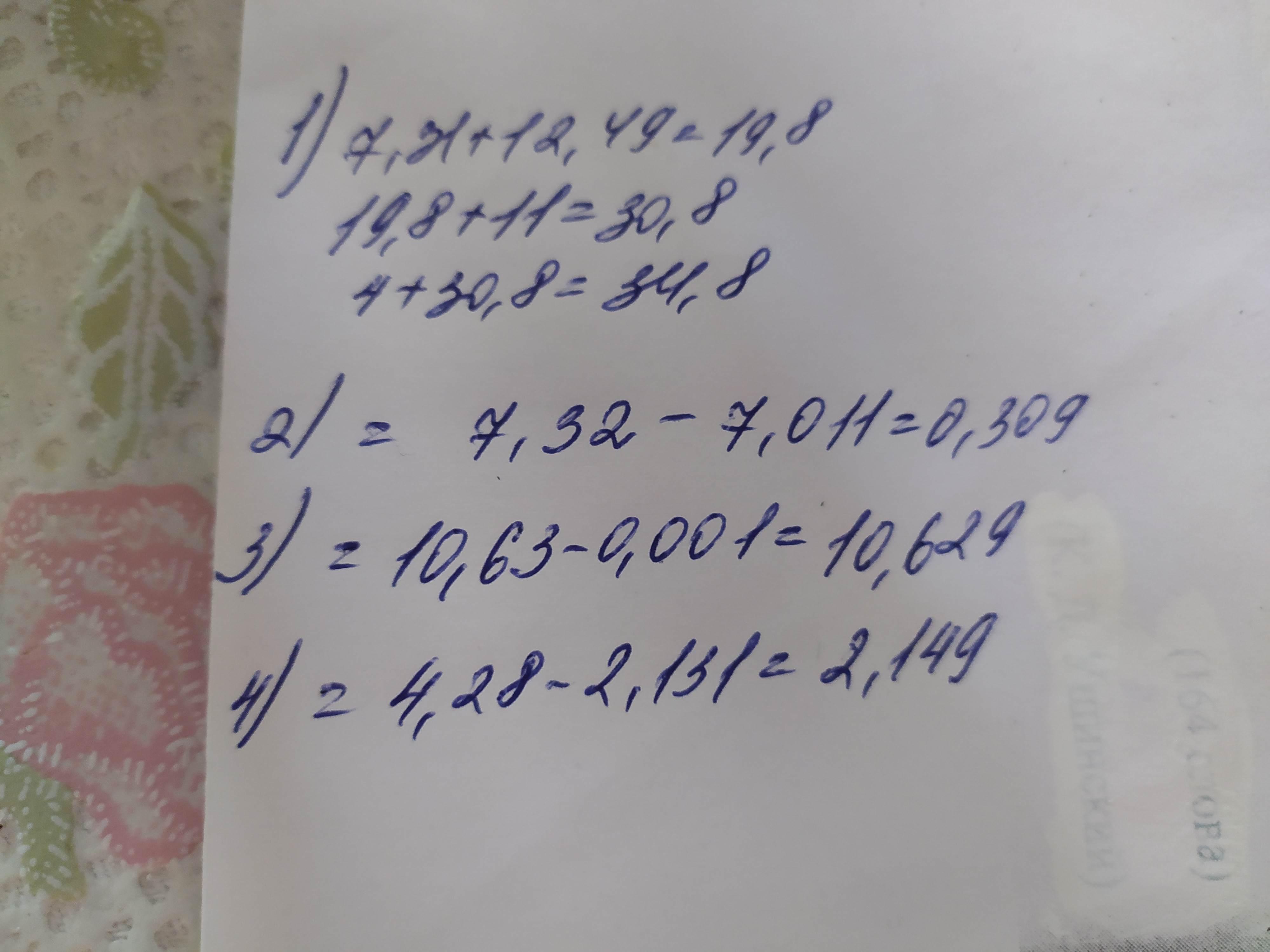 Ответ:1)4+7,31+11+12,49 = 34,8