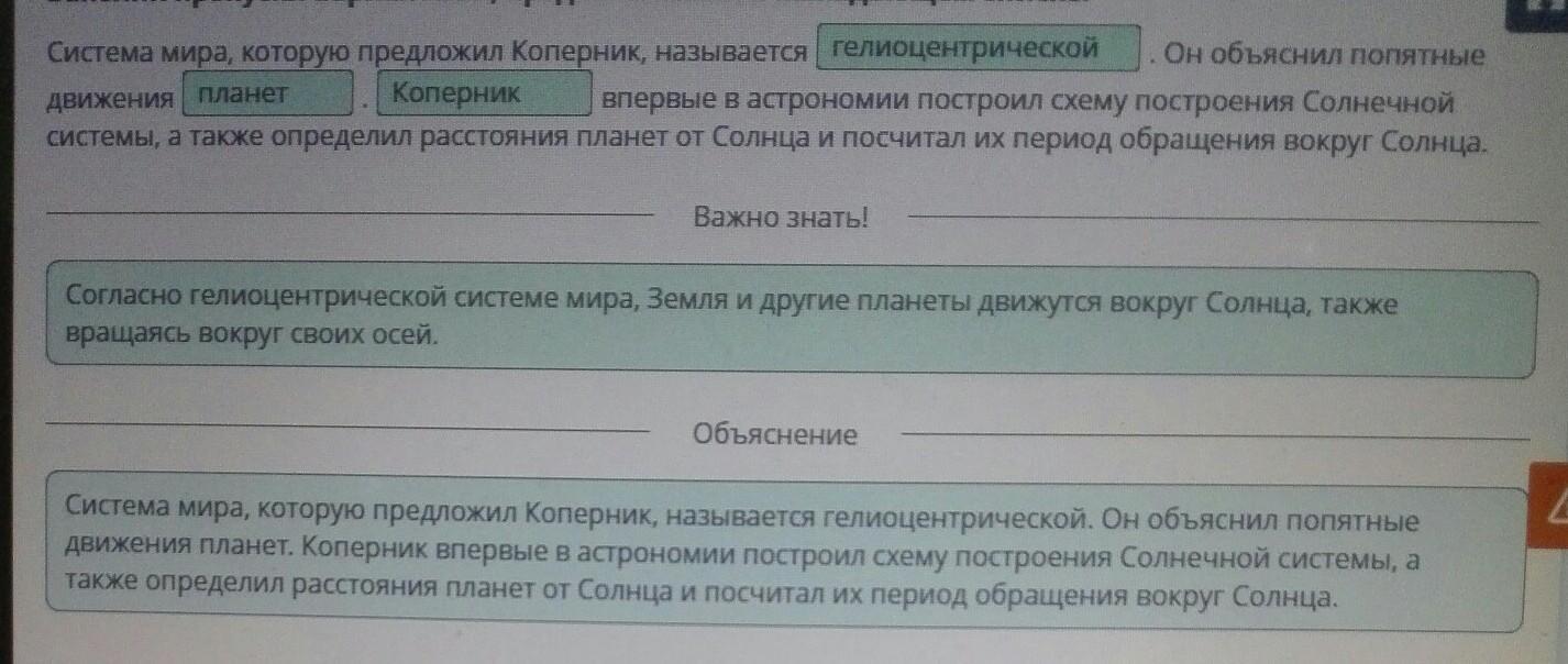 Это представление об устройстве мира, согласно которому Земля и все другие планеты вращаются вокруг Солнца.