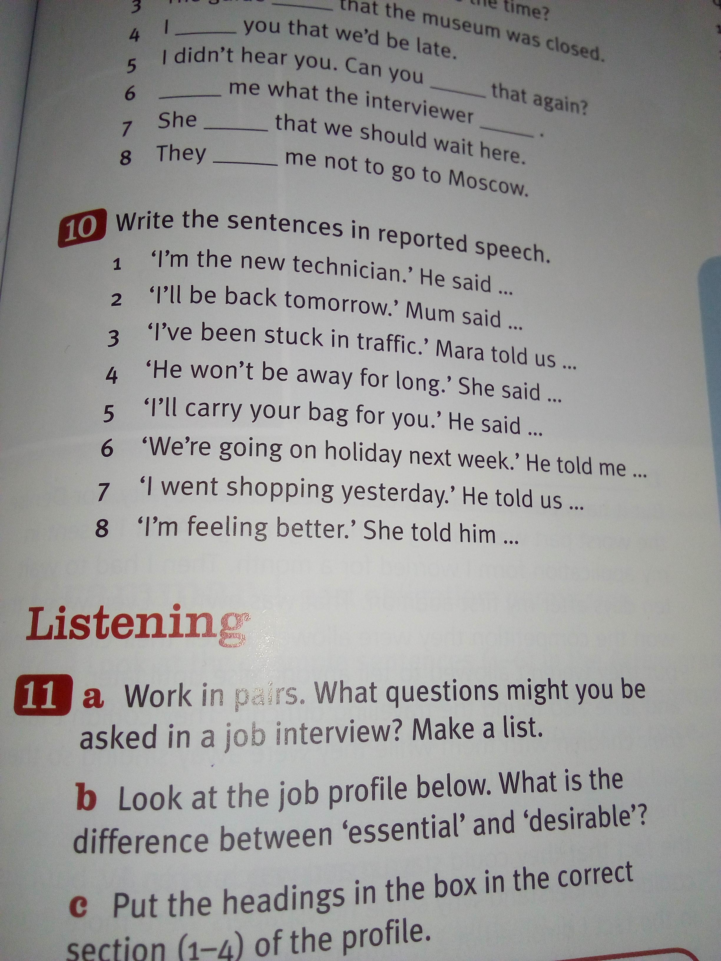 3 Maria told us (that) she had been stuck in traffic.