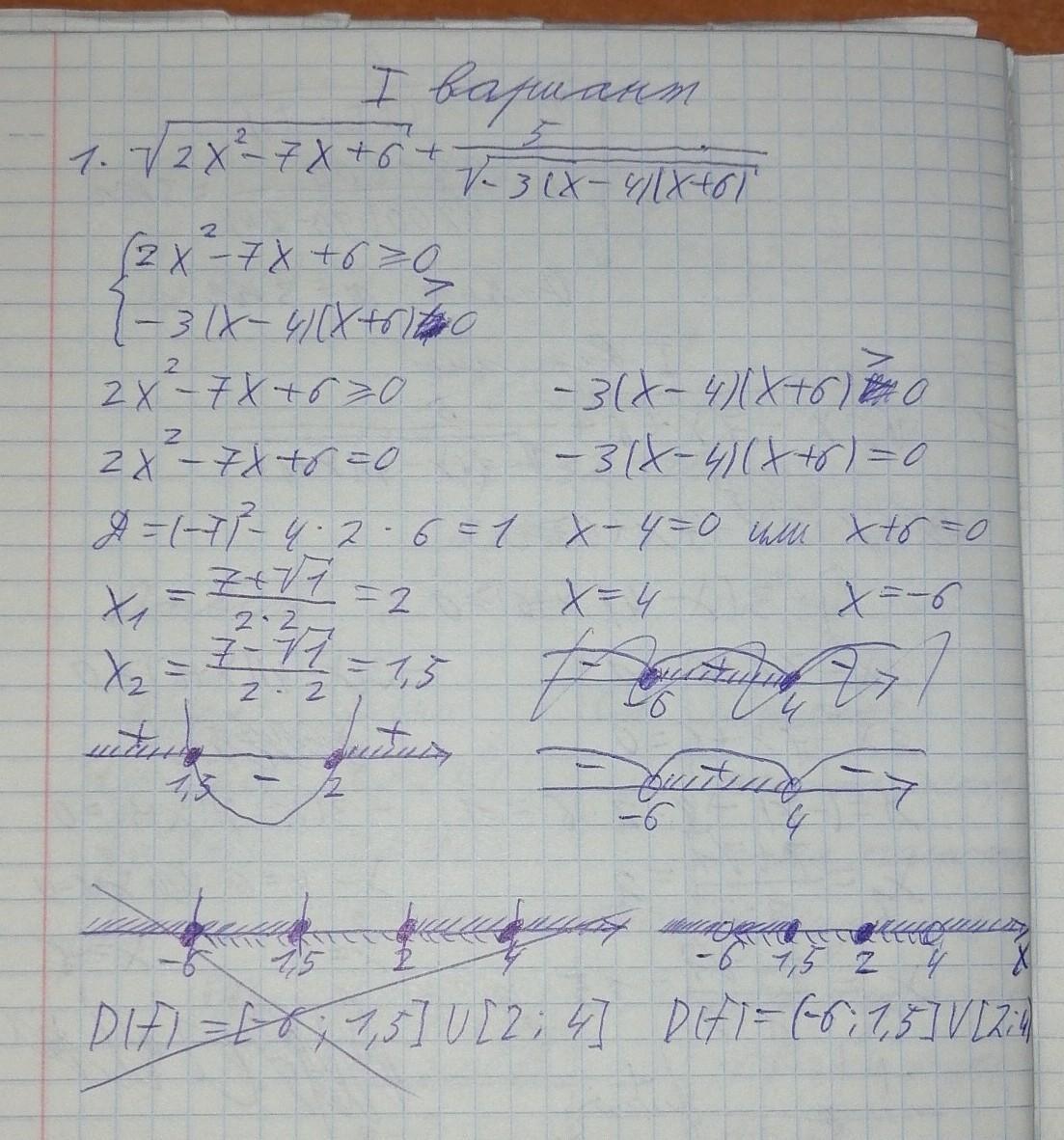 Решите систему двух неравенств. Первое подкоренное выражение неотрицательно. Второе строго положительно.