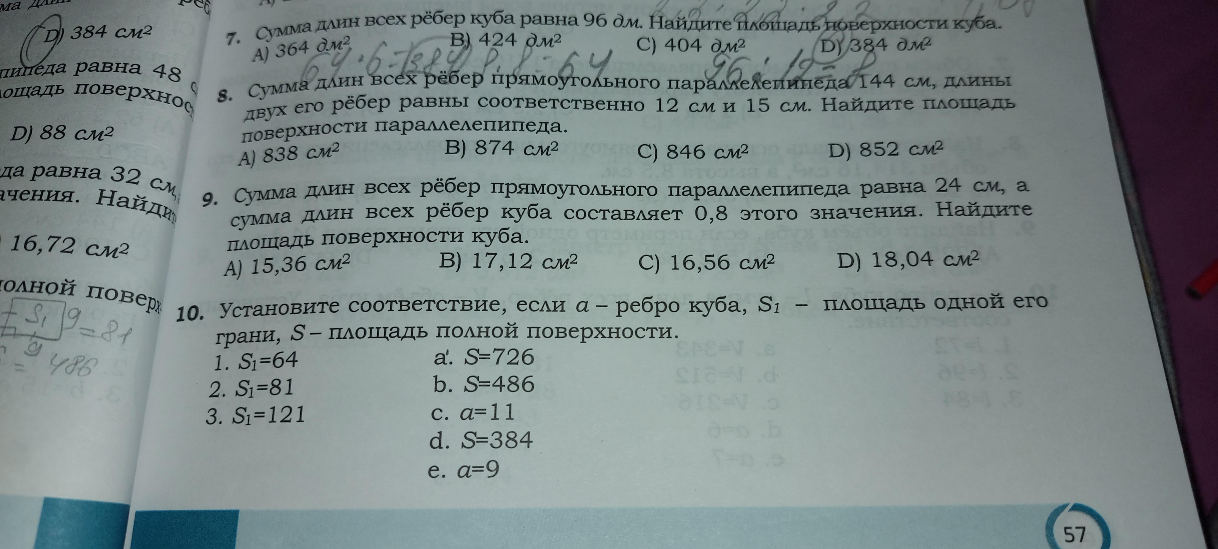 1) S1 = 64cм² a= 8 см S=6a²= 6 * 8²= 384см²