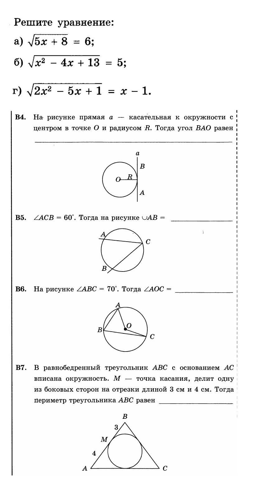 B4. Прямая a имеет одну общую точку с окружностью O. => прямая a является касательной и по теореме (касательная к окружности перпендикулярна к радиусу OR, проведенному в точку касания) Т.е. Угол BAO=90°