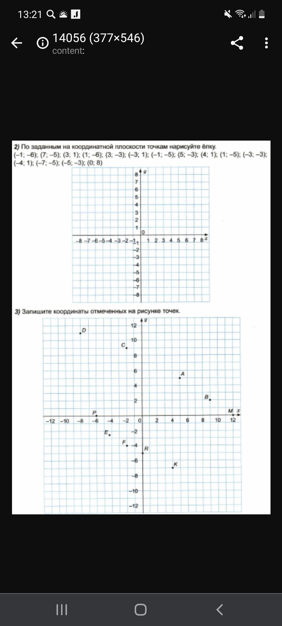 Запишите координаты точек отмеченных на рисунке.