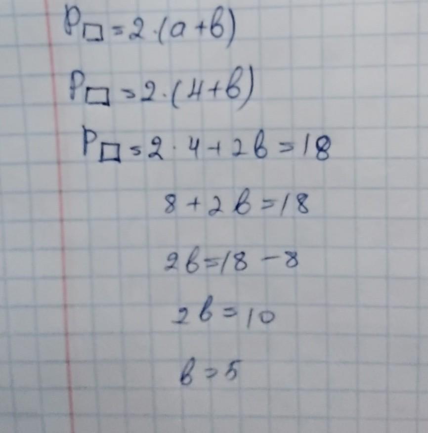 Периметр прямоугольника равен 18 см, а длина одной его стороны равна 4 см. Найди длину другой стороны этого прямоугольника