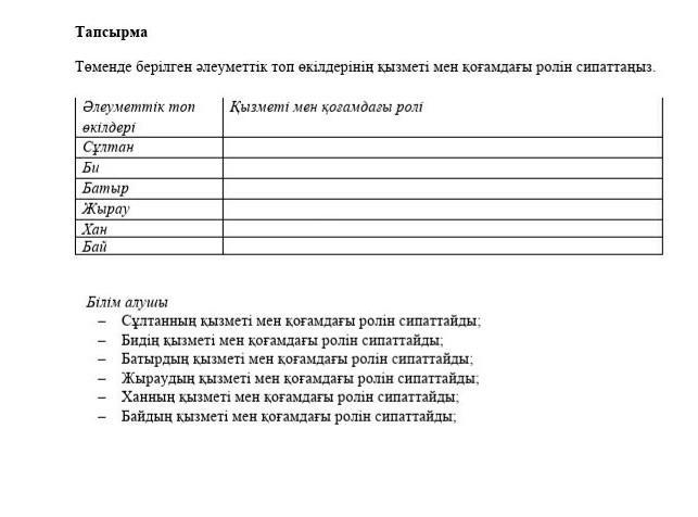 төменде берілген әлеуметтік өкілдерінің қызметі мен қоғамдық рөлін сипаттаңыз .
