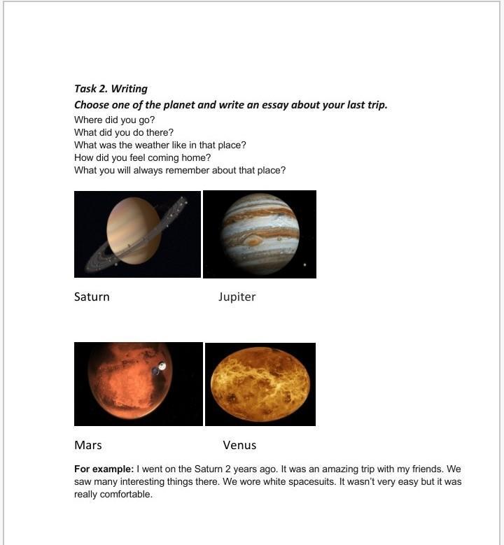 I went on the Mars a two month ago. It was fantastic travel with my parents. We saw very beautiful lanscapes there. It was extraordinarily, but I like this trip.