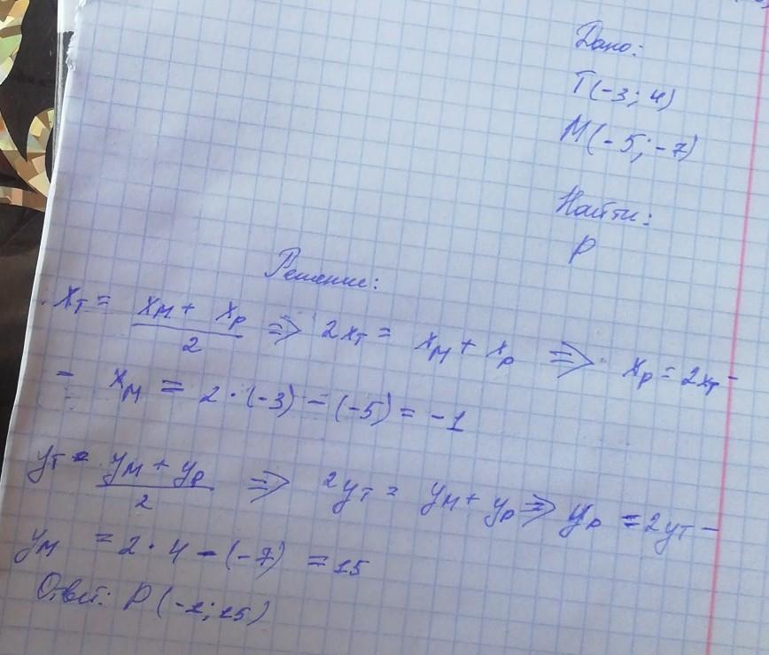 Точка Т - середина отрезка MP а) найдите координаты точки Т если М (-3;4) и Р (-6;8) б)Найдите длину отрезка МР