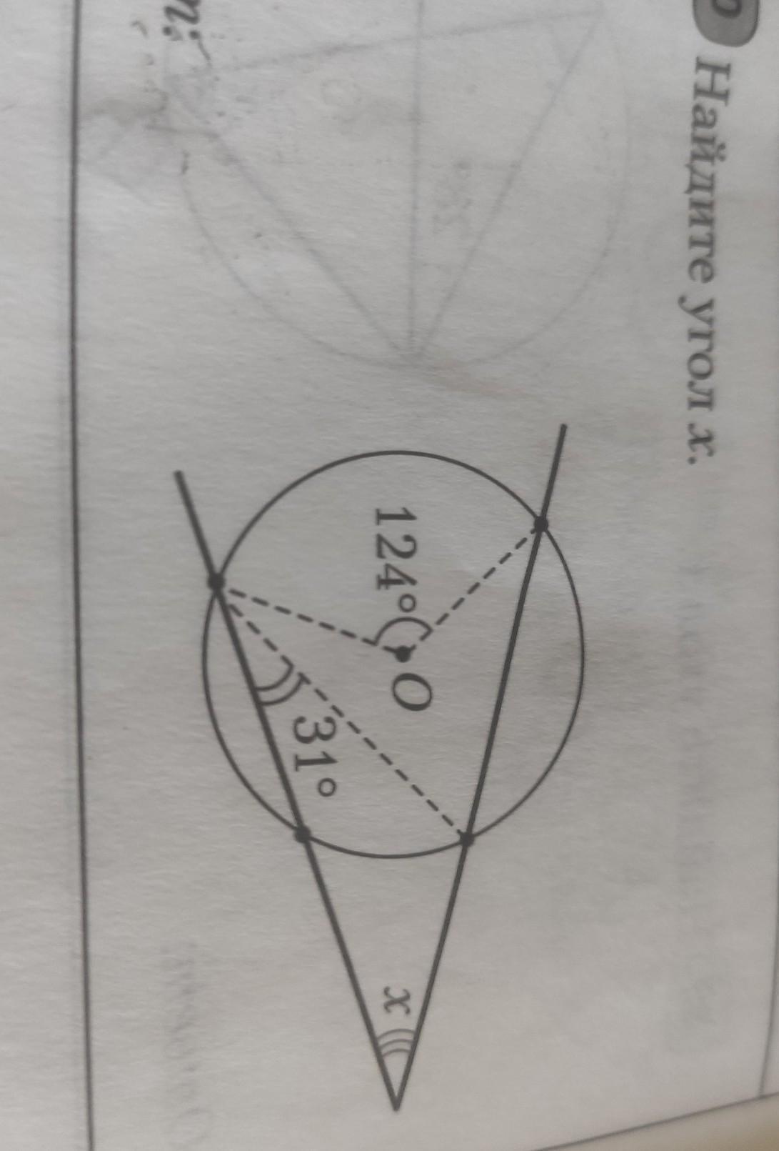 3) ∠х = (∪АК-∪BD)/2 = (124°-62°)2=62°/2 = 31°
