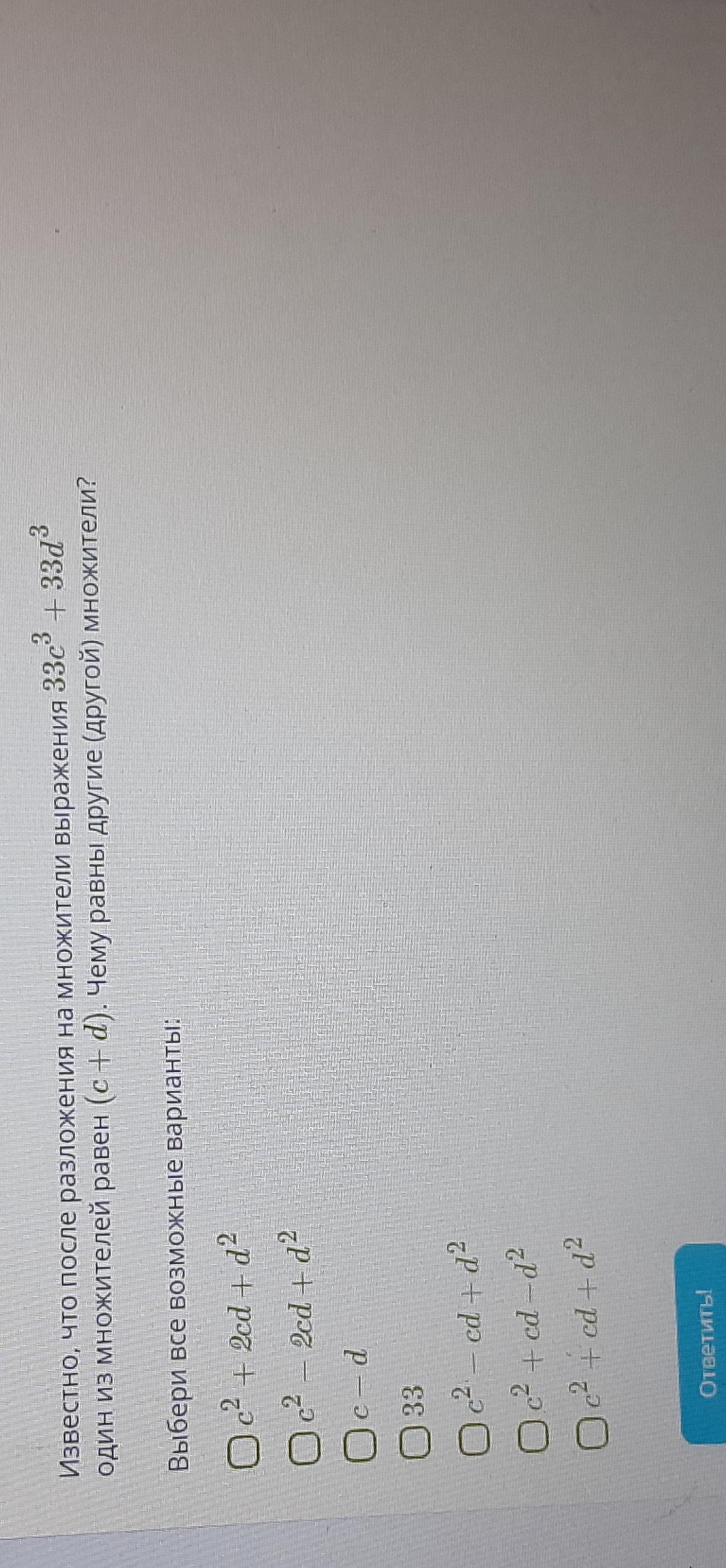 33c³ + 33d³ = 33×(c³+d³) = 33×(c+d)×(c² - cd + d²)