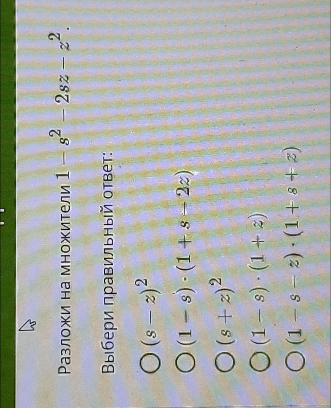 1-s²-2sz-z² = 1 - (s²+2sz+z²) = 1 - (s+z)² = 1² - (s+z)² = (1-s-z)*(1+s+z)
