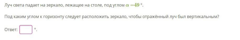 Под каким углом к горизонту следует расположить зеркало, чтобы отражённый луч был вертикальным?